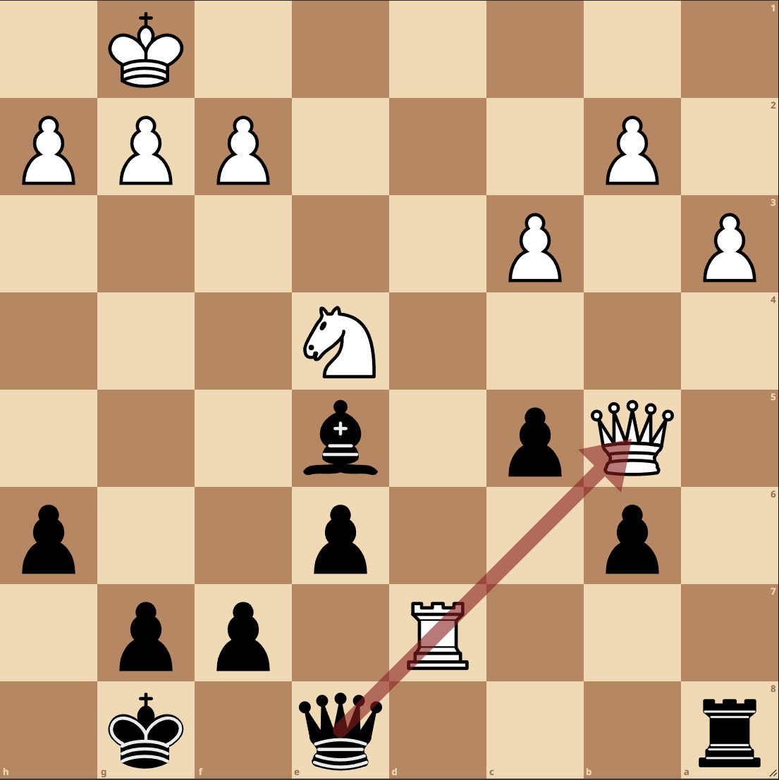 The bishop on d4 is pinned to White's queen. How can we take advantage of it? We should attack it - 1...e5! and White loses his bishop as moving it would give up a whole queen!